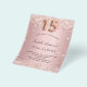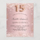 For an elegant Quinceañera, 15th birthday party. A blush pink gradient background. Decorated with rose gold faux confetti. Personalise and add a name and party details. The name is written with a hand lettered style script. Number 15 is written with a balloon style font.