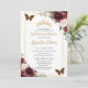 Quinceañera Burgundy Blush Floral Princess Tiara Invitation
