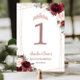 Quinceañera Burgundy Blush Floral Rose Gold Table Number