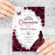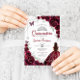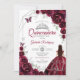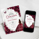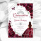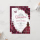 Burgundy, silver and white Quinceanera celebration invitation. Features, brunette girl in ball gown dress, script font, butterflies, watercolor roses and tiara. Perfect for an elegant princess style glam celebration. Personalise with your own details. Printed Zazzle invitations or instant download digital printable template.