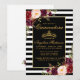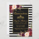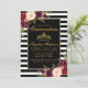 Elegant Watercolor Burgundy Marsala Floral, Gold Crown, Black and White Stripes Quinceanera Invitation Card