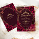 Burgundy and gold Quinceanera celebration invitation. Features brunette girl in ball gown dress script font, gold butterflies, watercolor roses and tiara. Perfect for an elegant princess style glam celebration. Personalise with your own details. Printed Zazzle invitations or instant download digital printable template.