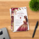 Quinceañera Burgundy Red Gold Quince Dress Flowers Acrylic Invitations