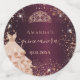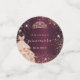For an elegant Quinceañera, 15th birthday. A burgundy faux metallic looking background colour. Decorated with rose gold faux glitter dust,a tiara crown and a dress. Personalise and add a photo,name, age and a date. Quinceañera is written with a modern hand lettered style script with swashes.