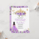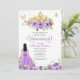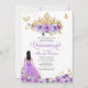 Quinceanera invitation in lilac and lavender shades of purple featuring gold butterflies and a beautiful tiara and a girl in a flowing ball gown. Visit shop for more variations in skin tone and colour combinations