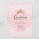A lovely pink quinceañera invitation with a white, lace-like pattern overlay and a gold crown. (<a href='https://www.freepik.com/free-vector/quinceanera-party-invitation_3276553.htm'>Designed by Freepik</a>). <br/><br/>The card is easy to customise with your wording, font, font colour, paper shape options and choice of six paper types.<br/><br/>Not exactly what you're looking for? All our products can be custom designed to meet your needs at no extra charge.<br/><br/>Simply contact us at heartfelthelper@gmail.com.<br/><br/>Coordinating products available: Just ask us!"