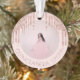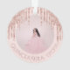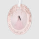 An ornament for a girly and glamorous Quinceañera, 15th birthday. A rose gold, pink background and decorated with rose gold faux glitter drips, paint dripping look. Personalize and add a photo, age and a date. Dark rose gold colored text. Perfect as table setting, party decoration, favor, keepsake or as a gift.
