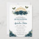 Quinceañera Dark Teal Floral Butterflies Crown Invitation