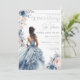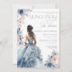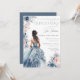 Quinceañera Dusty Blue Gown Pink Floral Brunette Invitation