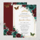 Quinceanera Emerald Burgundy Floral Butterflies Invitation