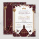 Quinceañera Emerald Gold Burgundy Roses Princess Invitation