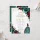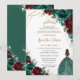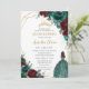 Quinceañera Emerald Green Burgundy Floral Gold Invitation