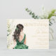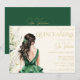Quinceañera Emerald Green Dress Floral Brunette Invitation