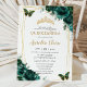 Quinceañera Emerald Green Floral Butterflies Tiara Invitation