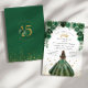 Celebrate in royal style with this stunning emerald green quinceañera invitation. Featuring a glamourous ball gown design, lush green roses, faux gold foil accents on the front, this invitation is fit for a queen. Design back feature's your child's name and faux gold foil accents. Perfect for a modern, elegant quinceañera celebration that will leave guests impressed from the very first look. Personalise easily with your event details for a truly unforgettable keepsake.*Please note gold accents on back are not the same raised real foil as the front of the design.