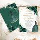 Quinceañera Emerald Green Floral Gold Princess Inv Invitation