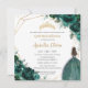 Quinceañera Emerald Green Floral Gold Princess Invitation