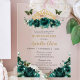 Quinceañera Emerald Green Floral Princess Crown Acrylic Invitations