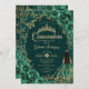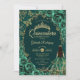 Emerald green and gold Quinceanera celebration invitation. Features brunette girl in ball gown dress, script font, gold butterflies, watercolor roses and tiara. Perfect for an elegant princess style glam celebration. Personalise with your own details. Printed Zazzle invitations or instant download digital printable template.