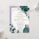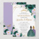 Quinceañera Emerald Green Lilac Floral Roses Twins Invitation