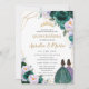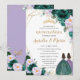 Quinceañera Emerald Green Lilac Floral Roses Twins Invitation