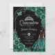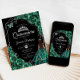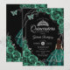 Quinceanera Emerald Green Silver Dress Floral Invitation
