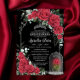 Quinceañera Enchanted Red Rose Floral Black Silver Invitation