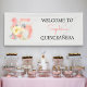 Personalised 15th Birthday Party Banner. This delicate and feminine design features the number 15, decorated with a bouquet of flowers and foliage. It has a soft colour palette of blush pink, apricot, yellow, gold and dusty blue. The banner is lettered in pretty script and classic typography with the wording "Welcome to [your name's] Quinceanera". The banner has a lightly textured background effect in shades of white and soft grey. Please browse our store for coordinating quinceanera invitations and party decor.
