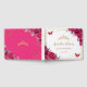 Cherish your special day for the years to come with a customised guest book. Featuring pretty fuchsia / hot pink flowers and pink and gold butterflies. Personalise it with your details easily and quickly, simply press the customise it button to further re-arrange and format the style and placement of the text. Perfect for quinceanera, Sweet 16 and more occasions! (c) The Happy Cat Studio