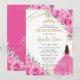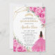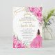 Quinceañera Fuchsia Pink Floral Princess Gold Invitation