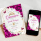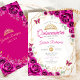 Quinceanera Fuchsia Pink Gold Floral Invitation