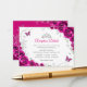 Fuchsia pink silver and white floral Quinceanera reception details enclosure cards. Features, script font, silver butterflies, watercolor roses and tiara. Perfect for an elegant princess style glam celebration. Personalize with your own details.