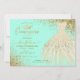 Quinceañera , Glitters Gown, Faux Gold+Mint Invitation