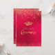PixDezines quinceanera featuring faux gold confetti, princess crown, accented with a stylish handwritten font. An iridescent red background can be adjusted to s different hue with filters.