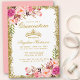 Quinceanera Gold Glitter Crown Pink Floral Invitation