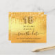 A girly and trendy Save the Date card for a Quinceañera, 15th birthday party. A modern faux gold looking background decorated with faux glitter drips, paint dripping look. Personalise and add a date and name. The text: Save the Date is written with a large trendy hand lettered style script. Number 15 with a balloon style font.