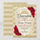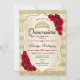 Features stripes, script font, red roses, tiara and confetti. Classy design with faux glitter gold. Perfect for an elegant glam celebration.