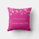 A pillow for a Quinceañera, 15th years old girls room. A hot pink background with stars. Personalise and add a name. Quinceañera is written with a large modern hand lettered style script.