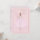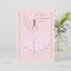 Quinceanera celebration and party invitation for a young 15 year old girl. The theme is formal, and the design is pink, with an illustrated young girl in a pink gown that has layers of light material, partially transparent. She has flowers on the gown and one in her hair. There is also a large flower in the background. The words can be changed on the inside of the card, the front is permanent. Thanks to Pixabay and Creative Fabrica for some of the elements in the design.