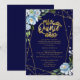 Quinceanera Invitation Gold Foil Dark Blue Floral