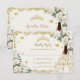 Quinceañera Ivory White Floral Dress Princess Gold RSVP Card