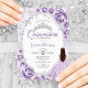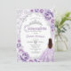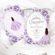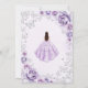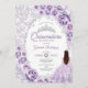 Lilac purple silver Quinceanera celebration invitation. Features brunette girl in ball gown dress, script font, silver butterflies, watercolor roses and tiara. Perfect for an elegant princess style glam celebration. Personalise with your own details. Printed Zazzle invitations or instant download digital printable template.