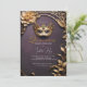 Make your Quinceañera truly enchanting with this elegant masquerade-themed invitation. The design showcases a luxurious royal purple and gold palette, reminiscent of a magical masquerade ball. The 3D faux golden foliage adds a touch of glamour to your celebration.