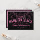 Masquerade ball invitations for quinceaneras. These invitations are two sided. The front design is black with pink lettering. The back if pink with a black border and black text. Customise both sides with your party information. Perfect for a formal Quinceanera.