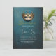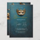 Invite loved ones to a magical Quinceañera celebration with these exquisite invitations. Featuring textured, ornamental rustic backgrounds—blue, royal purple, green, rust brown, charcoal black, and theatre red—adorned with a golden 3D effect Venetian mask. The words 'Quinceañera' shine in simulated gold glitter, promising an event filled with elegance and joy.