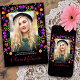 Mexican Fiesta Quinceanera Invitation with custom photo, for your daughter's 15th Birthday celebration. This floral Quinceañera theme features colourful Mexican folk art flowers in red, pink, purple and yellow on a black background. The back of the card has a floral bouquet made from the same fiesta flowers. The template is set up ready for you to customise the card with all your personal details for your Mexican Fiesta Quinceanera party. Please browse our store for matching and coordinating items.