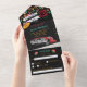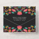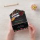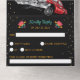 Impress your guests with this colourful Quinceañera invitation featuring vivid Mexican-themed floral decorations and golden confetti on the borders, decorated with a lovely red rose, a yellow sombrero, and a beautiful illustration of a red lowrider car on a black background. The lower part is customisable with your RSVP details.