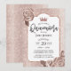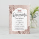 Modern Blush Rose Gold Floral Princess Crown Quinceanera 15th Birthday Party Invitations.
