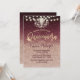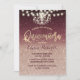 Quinceañera 15 Modern Rose Gold & Burgundy Red Faux Glitter String Lights Invitations.