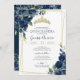 Quinceañera Navy Blue Elegant Watercolor Floral Invitation
